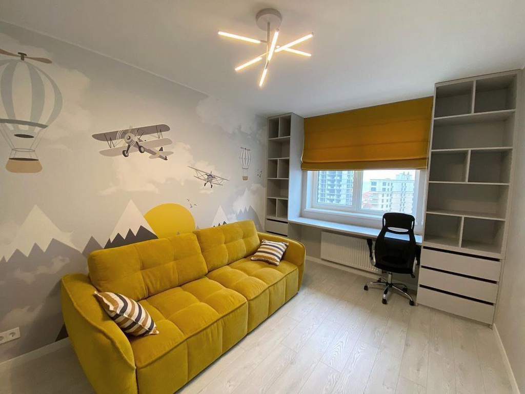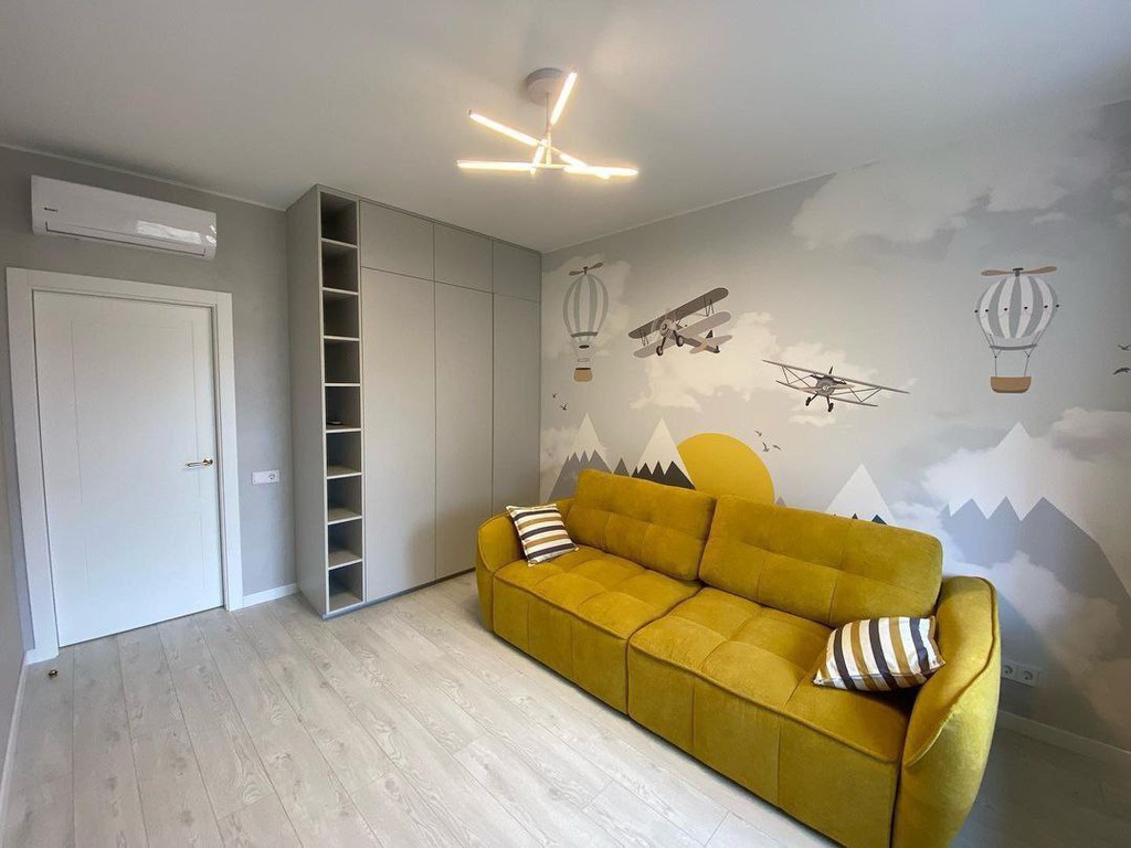 Мы позаботились о комфорте и безопасности. В комнате установлен тихий кондиционер для идеального микроклимата, безопасная дверь, использованы экологичные материалы. Многоуровневое освещение с LED-светильником и роллетами легко подстраивается под любое настроение и время суток. В итоге получилось стильное и по-настоящему детское пространство, в котором есть место и для учебы, и для полетов фантазии.