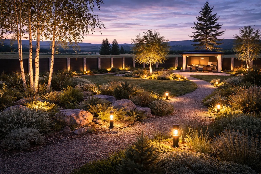 Помимо украшения местности, ландшафтное освещение используется для подсветки дорог и тропинок, что позволяет безопасно передвигаться по территории в темное время суток. Заказать ландшафтное освещение в Красноярске вы можете в компании SNATEK. Правильно спроектированное освещение решит сразу несколько проблем.